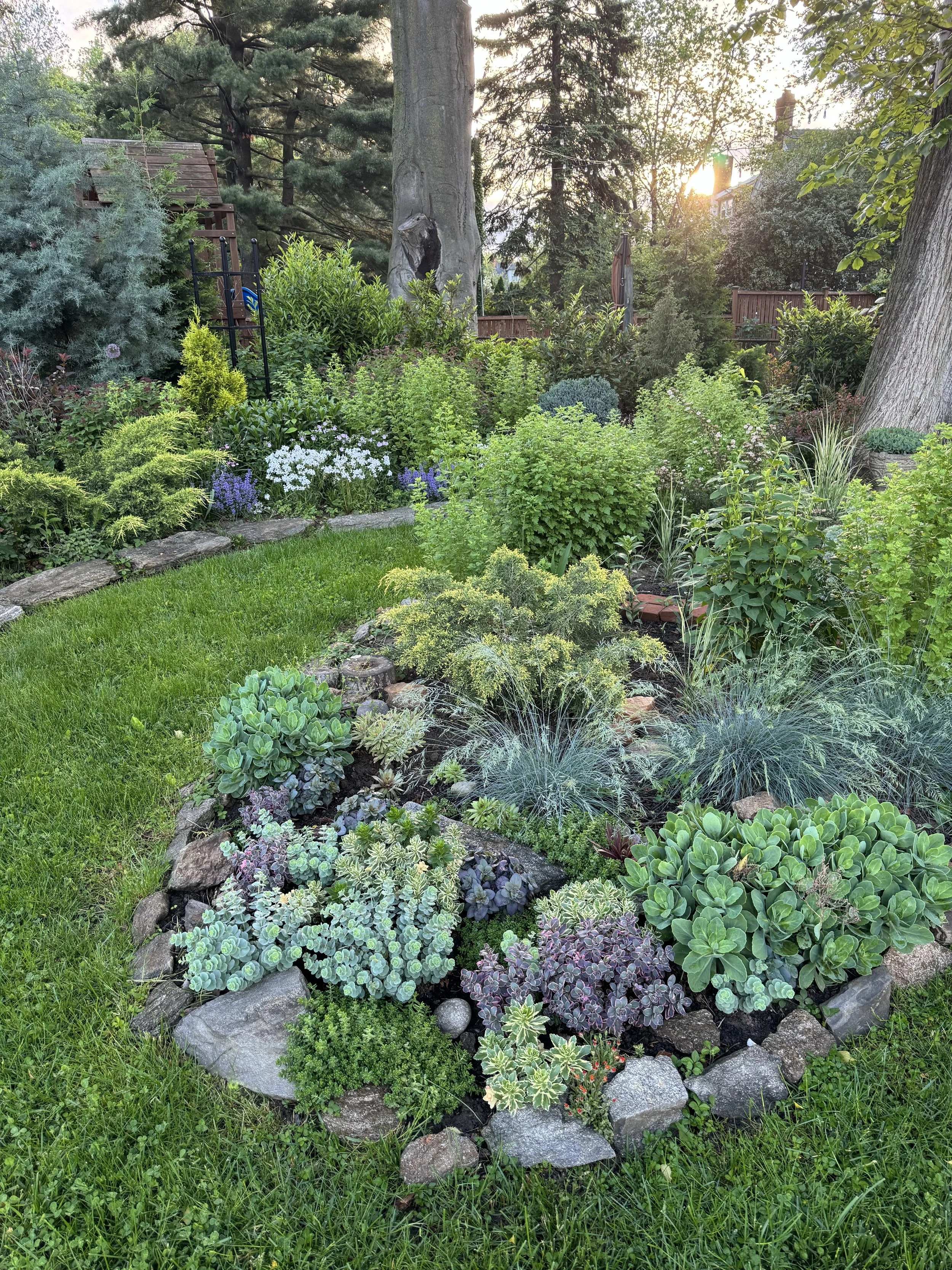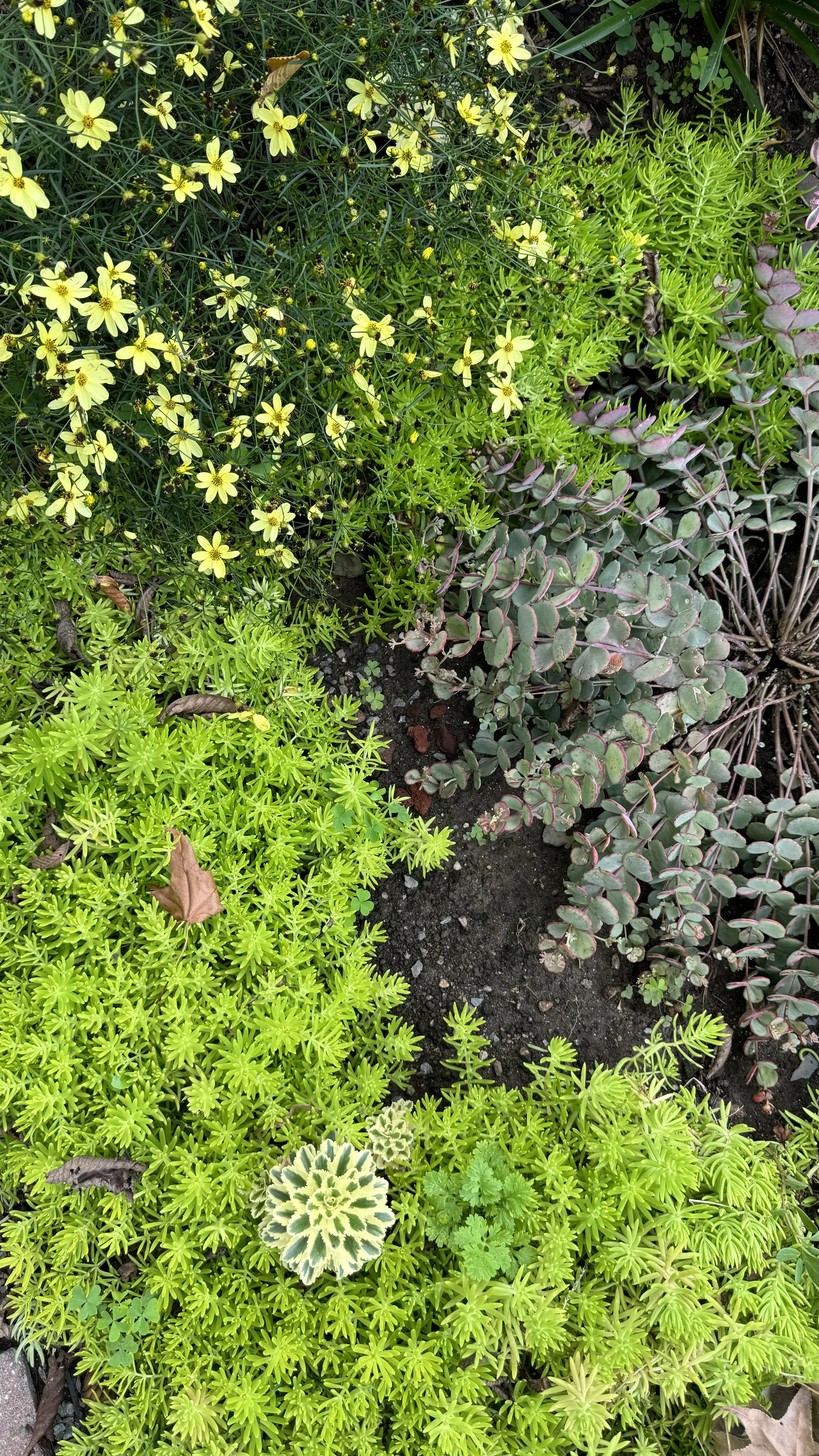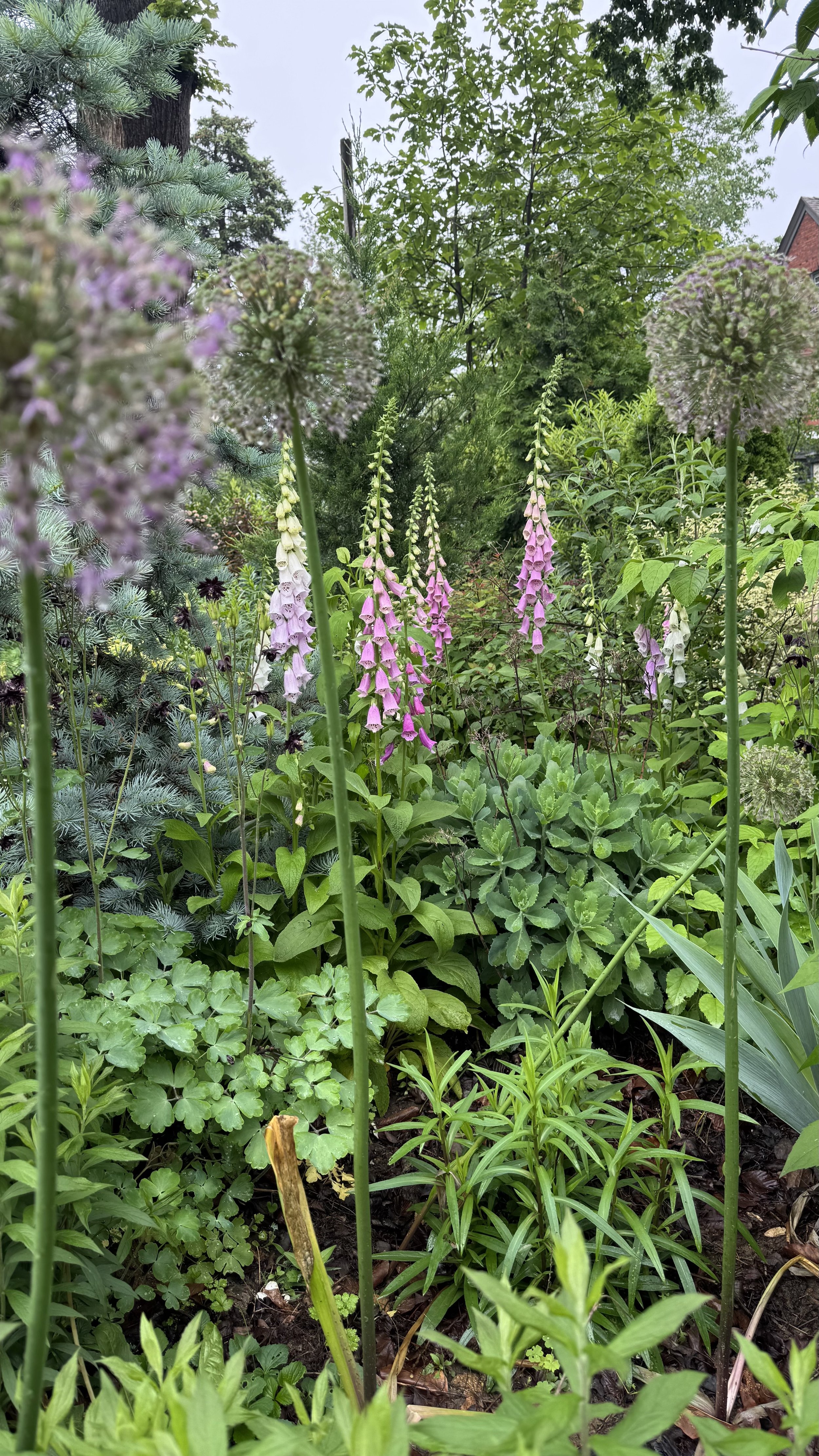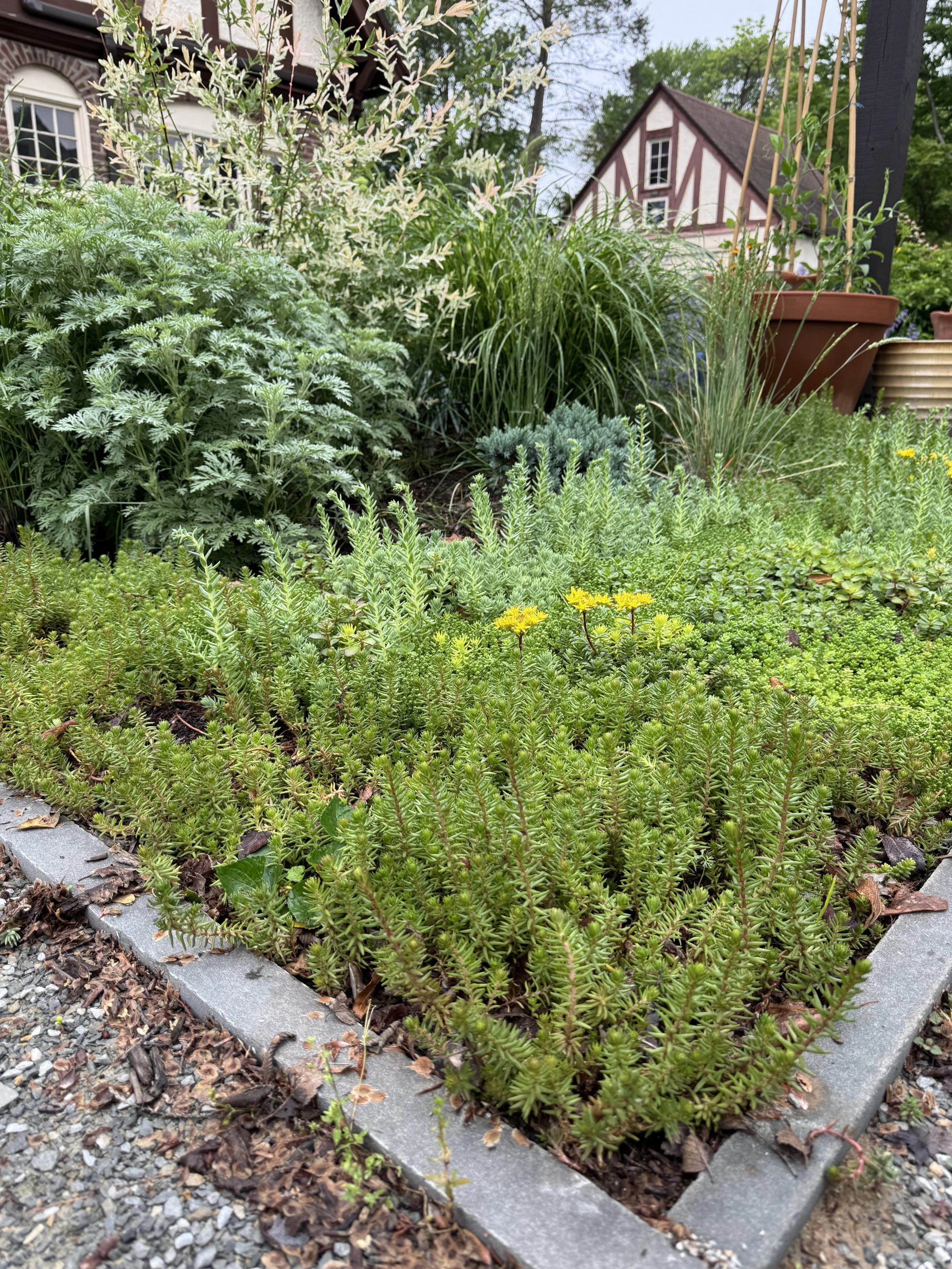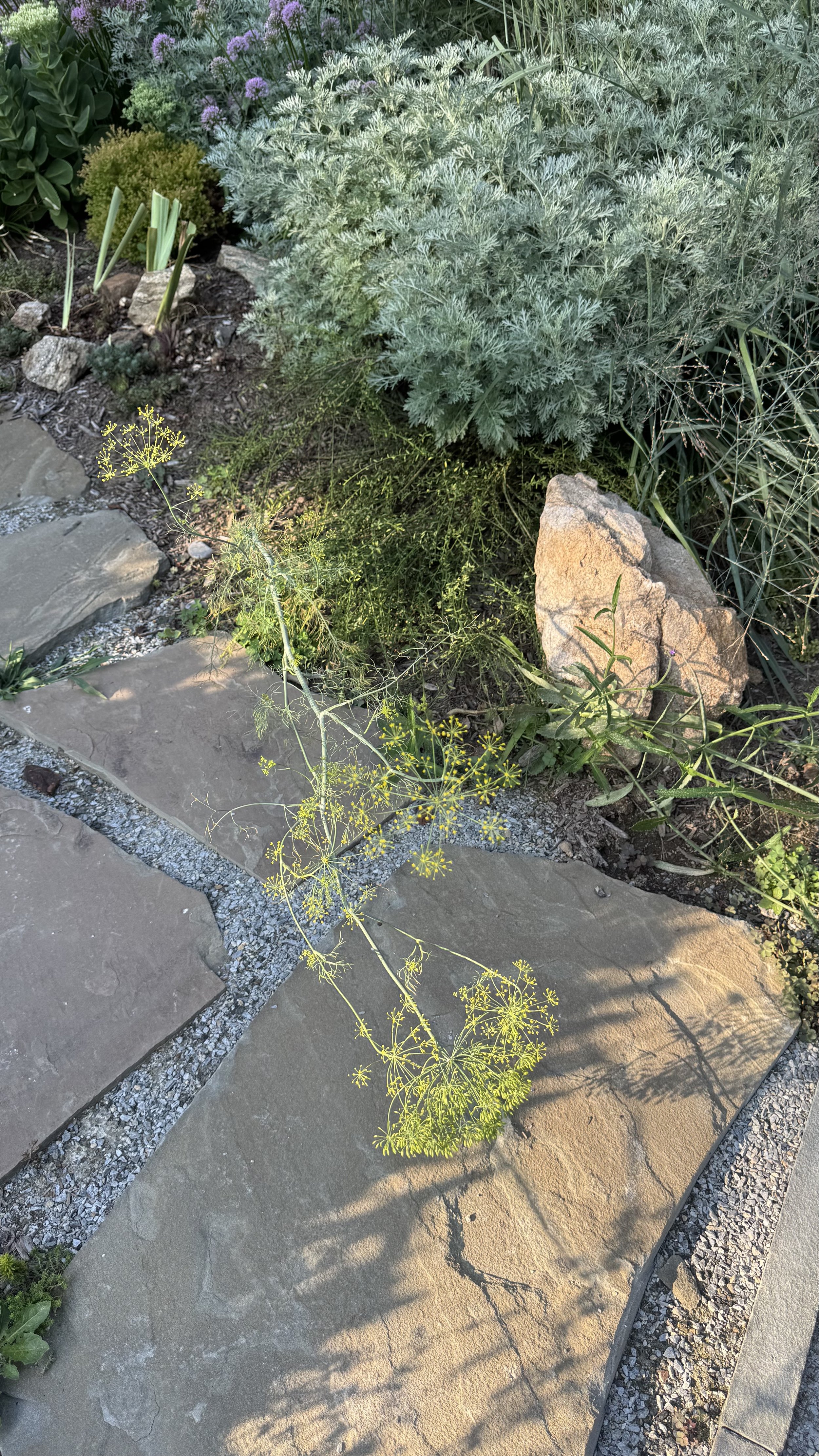 By early spring of 2024, I finally had enough established plants to divide and use throughout the garden. It made it possible to shape and plant the surrounding beds quickly, bringing the new patios and the rest of the space together.